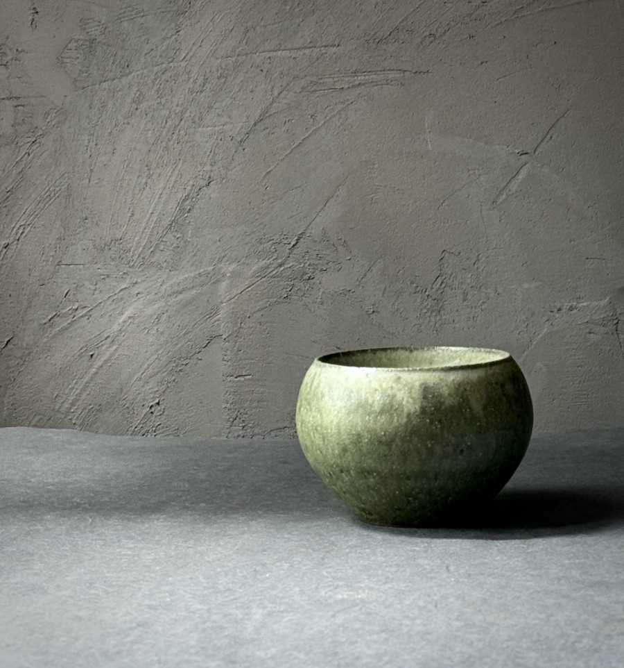 【 清岡 幸道 】 青灰オリーブ 凹(へん)ボウル