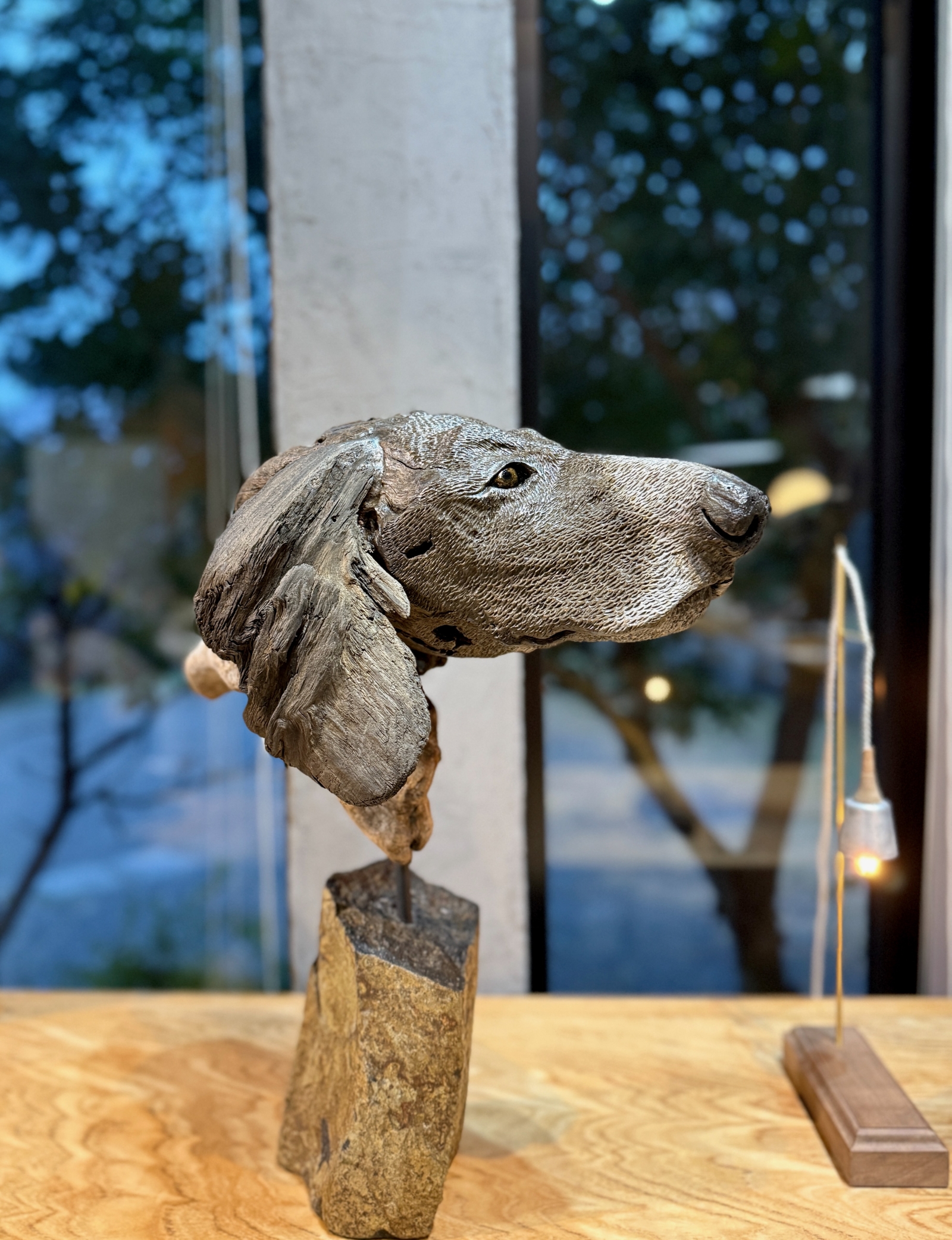 12月6日から【 流木と動物彫刻たち 流木彫刻家ヒナイジユズル 】の個展を開催しております。