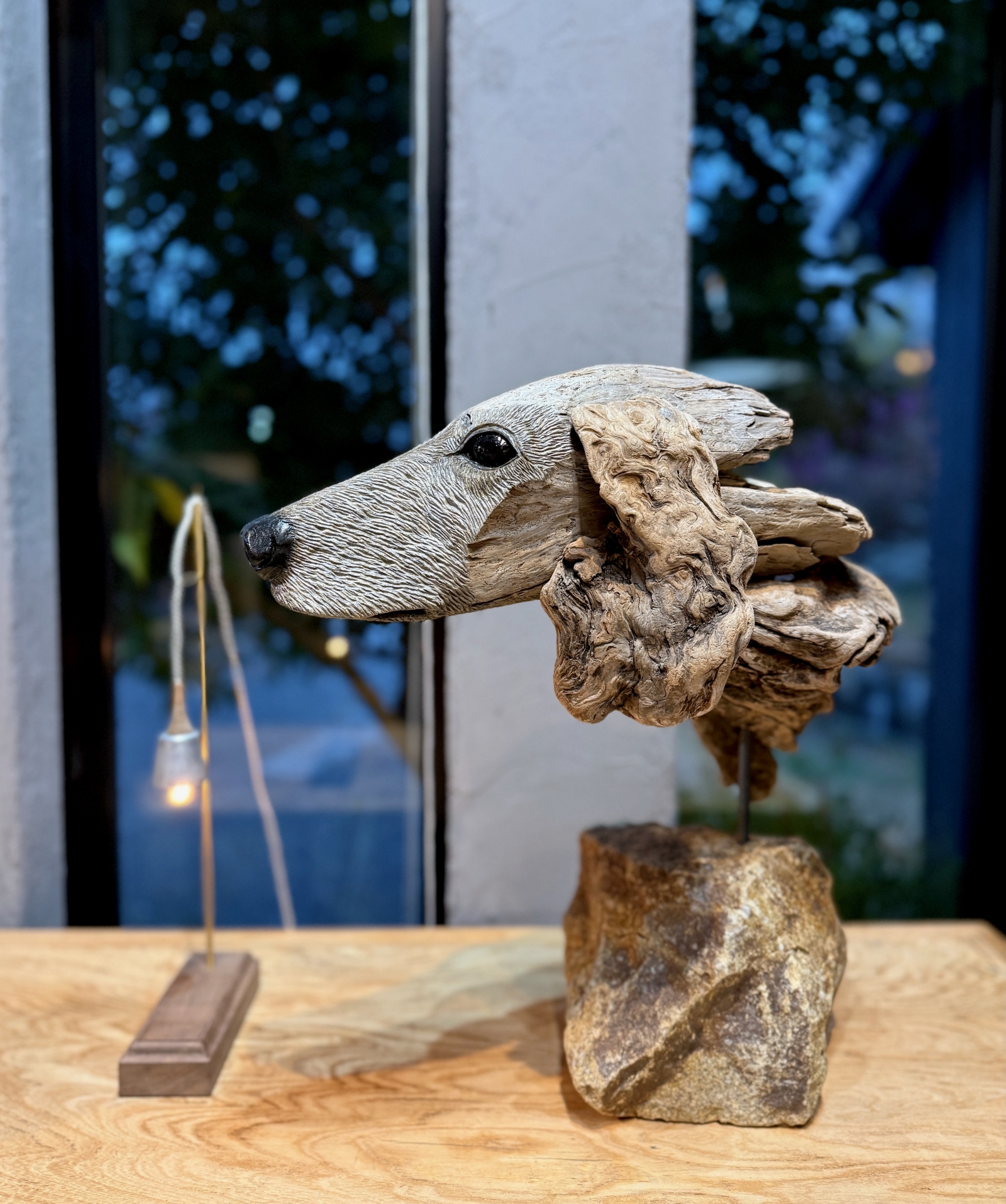 自然の造形美の流木を使い、人の手をほんの少し添えることで生まれた動物彫刻。