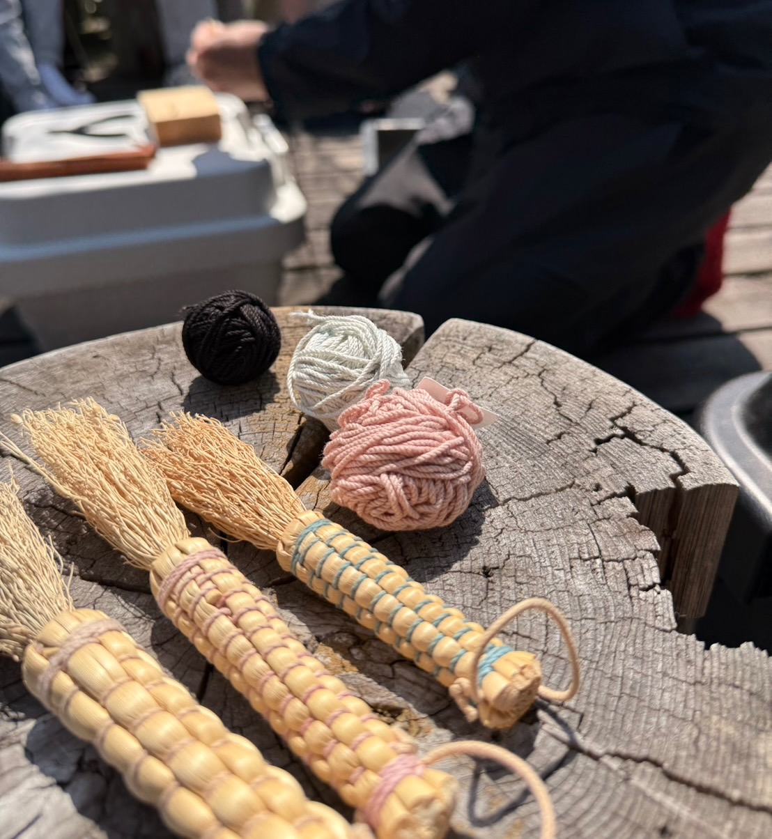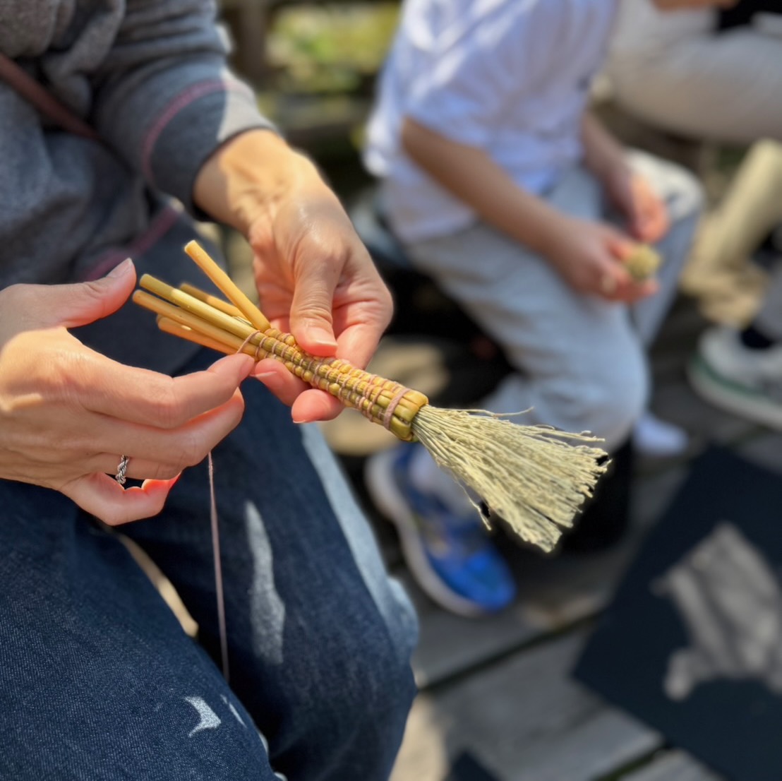 外では今回初めて、中津箒の職人さんから教えてもらう「ミニ箒作り」