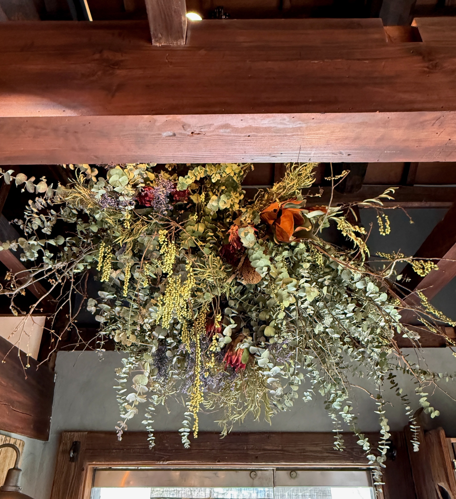 gullam入り口の天井から吊るしている「植物のオブジェクト」