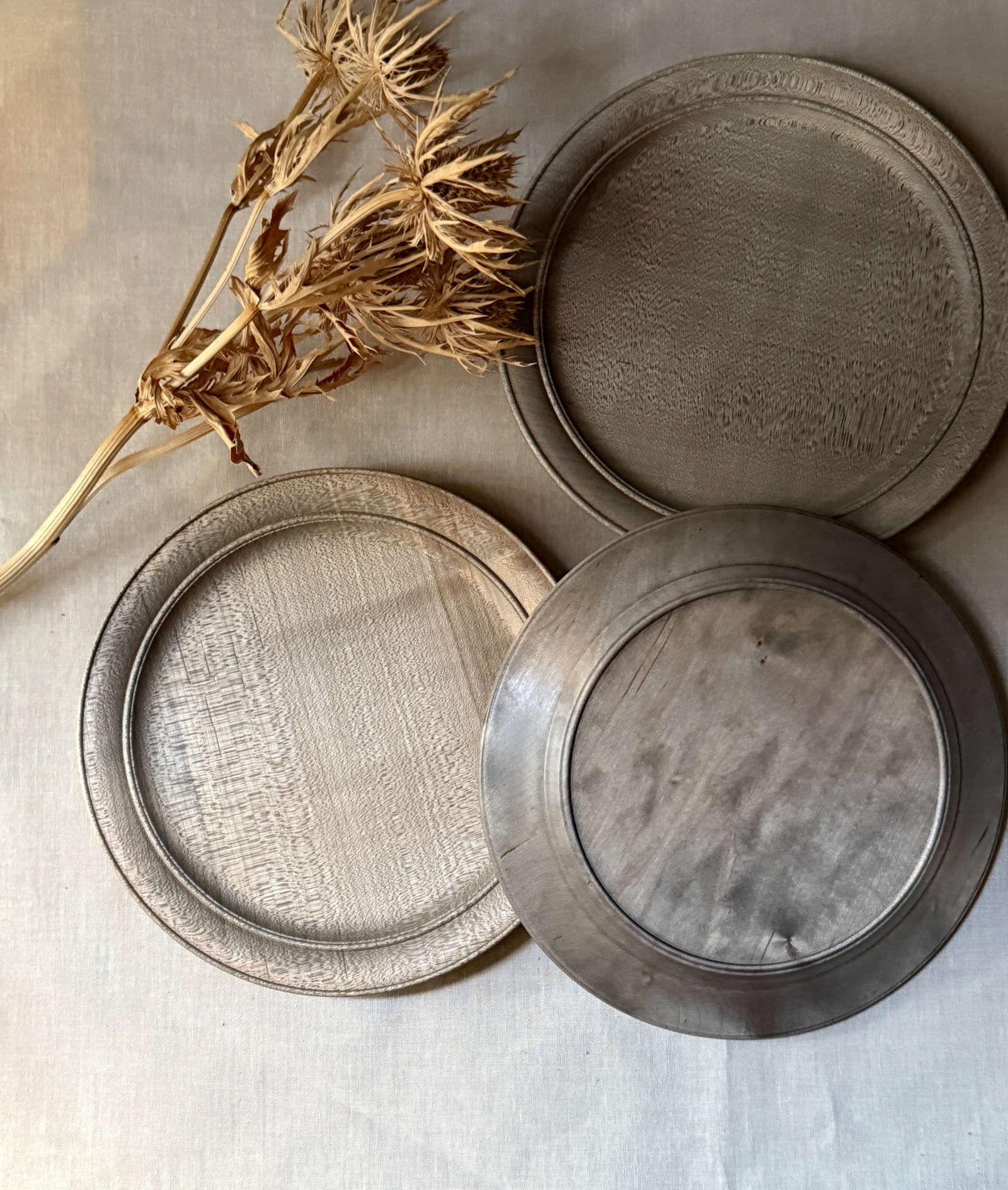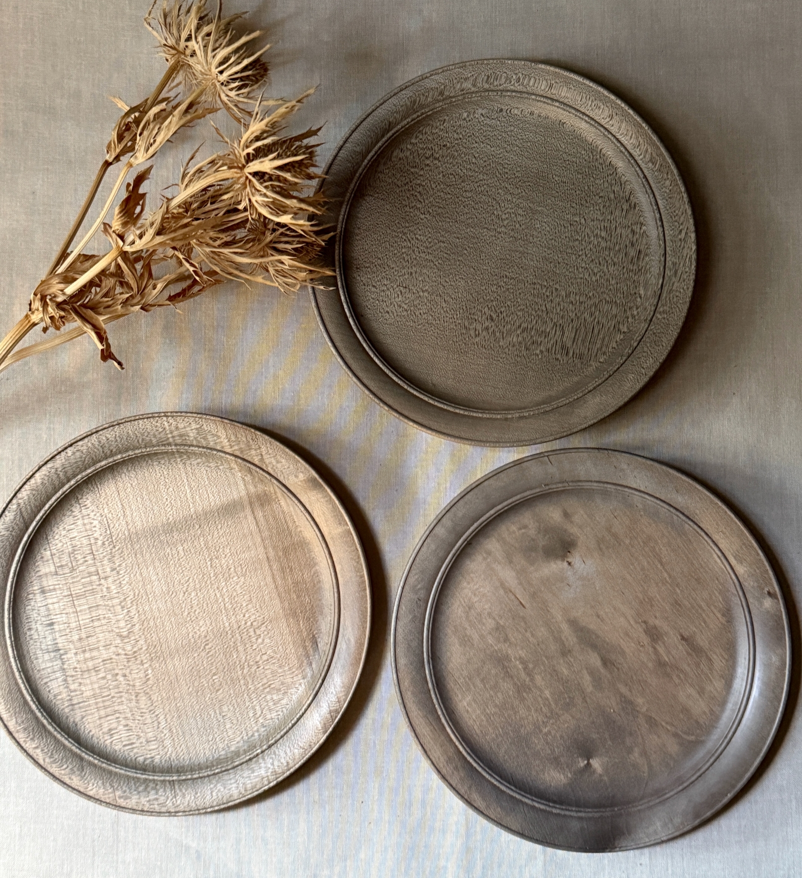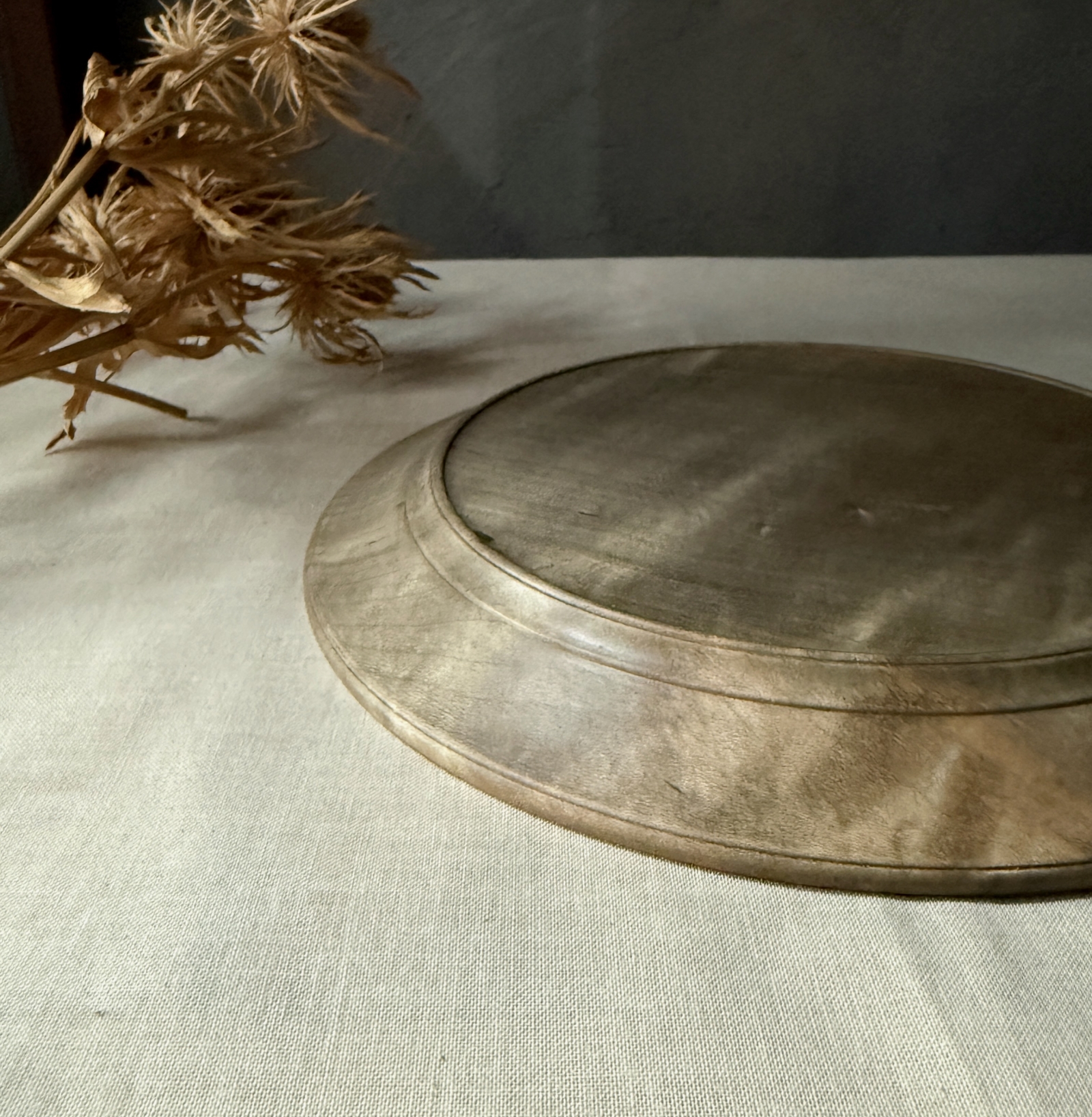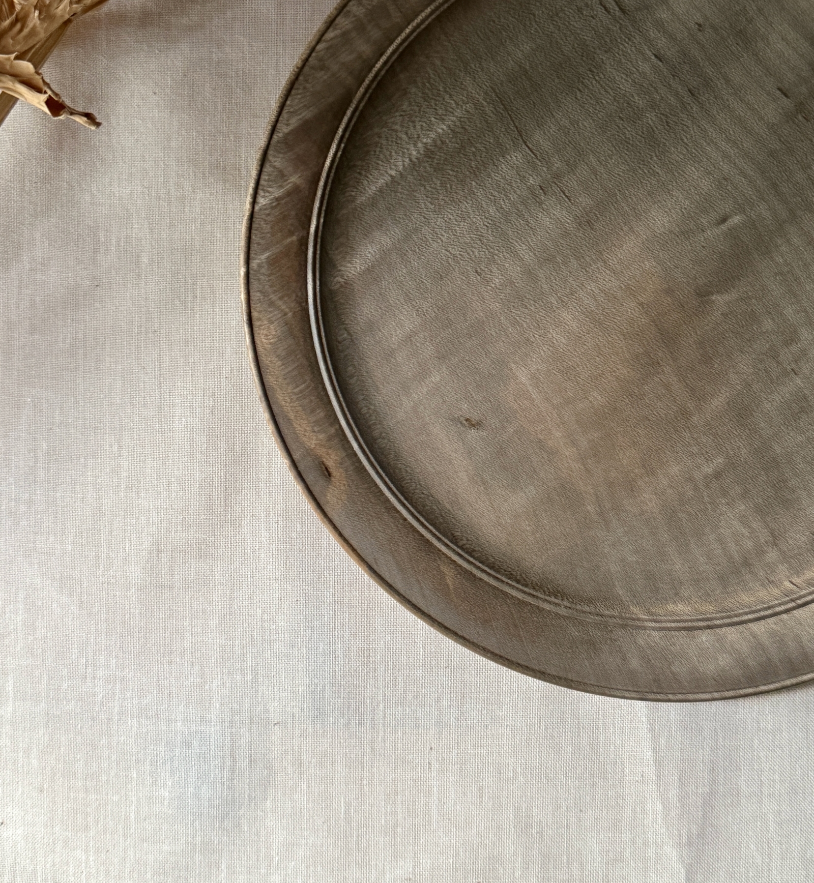 縁には凹凸をつけるモールディング加工が幾重も施されており、立体感や質感が出されていて細部までの拘りが伝わる丸い形のカッティングボード。