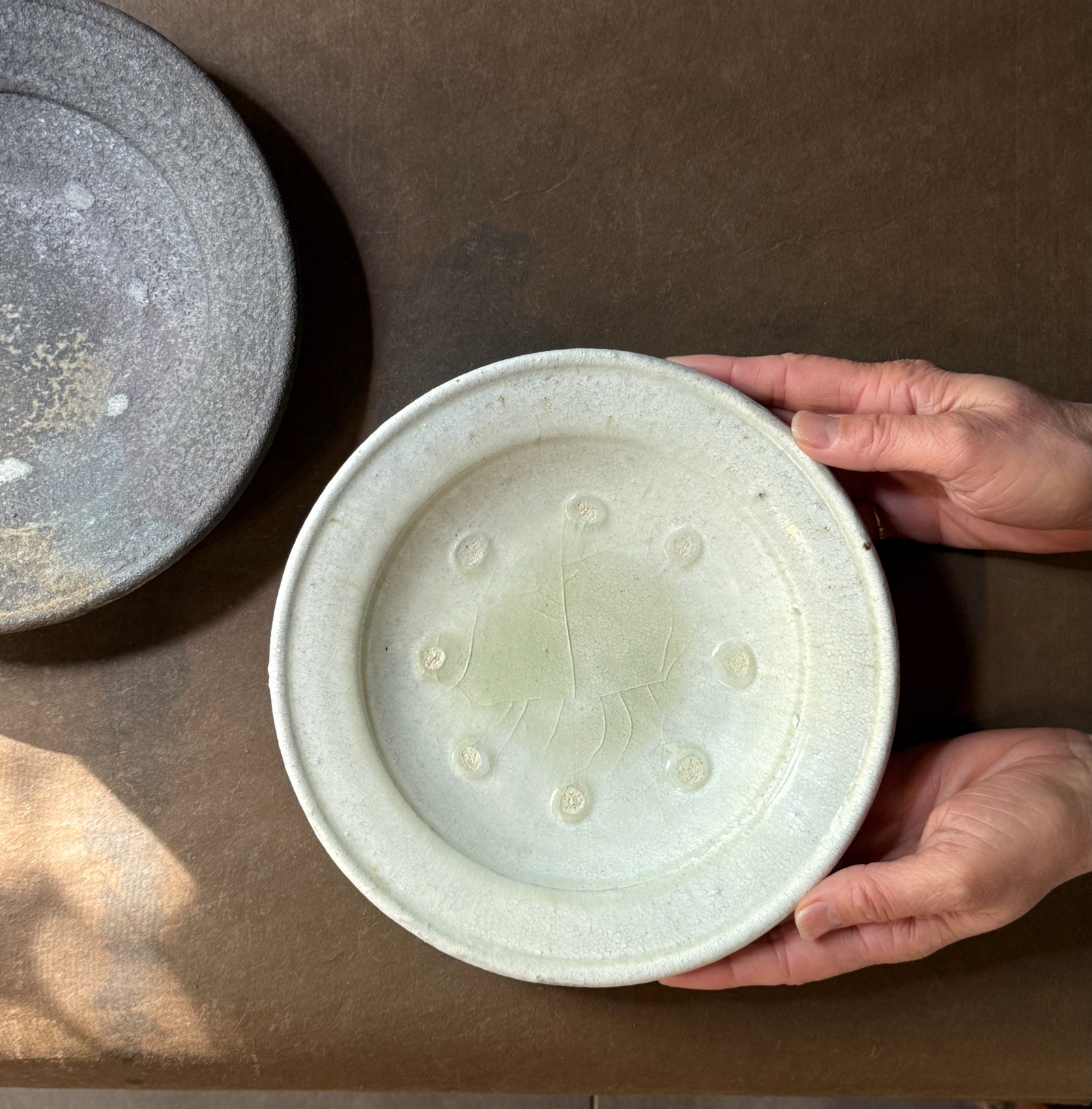 器の焼成時に、重ねて焼いた時にできる跡「目あと」によって、より深みある景色に。