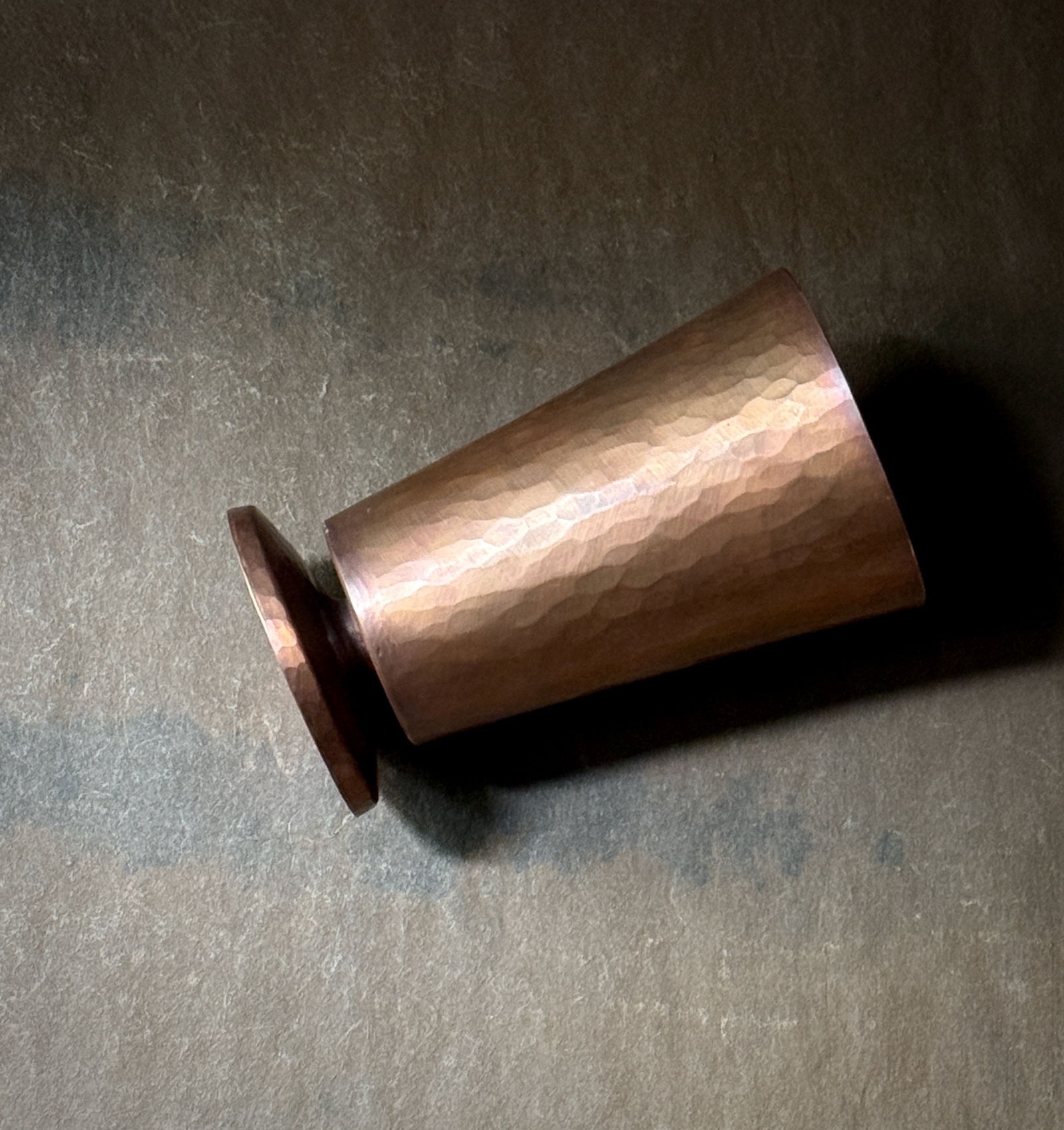その佇まいは手作業とは思えないほど美しい藤田さんの銅のカップです。