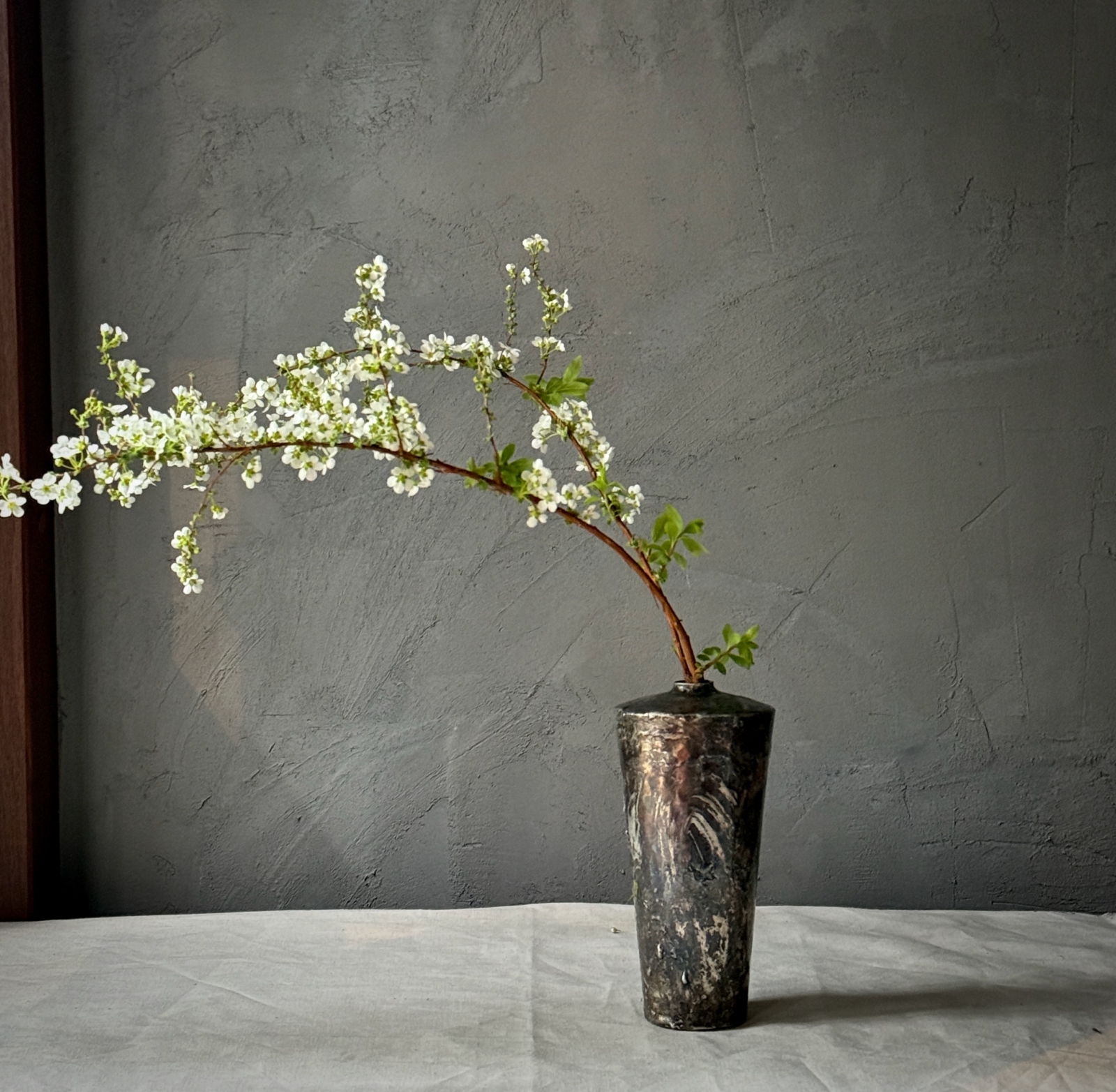 印象的な花器なので、何をどうやって生けようかと考えしまいがちですが、どんな生の草花でも、ドライフラワーでも馴染んでくれて草花を引き立ててくれます。