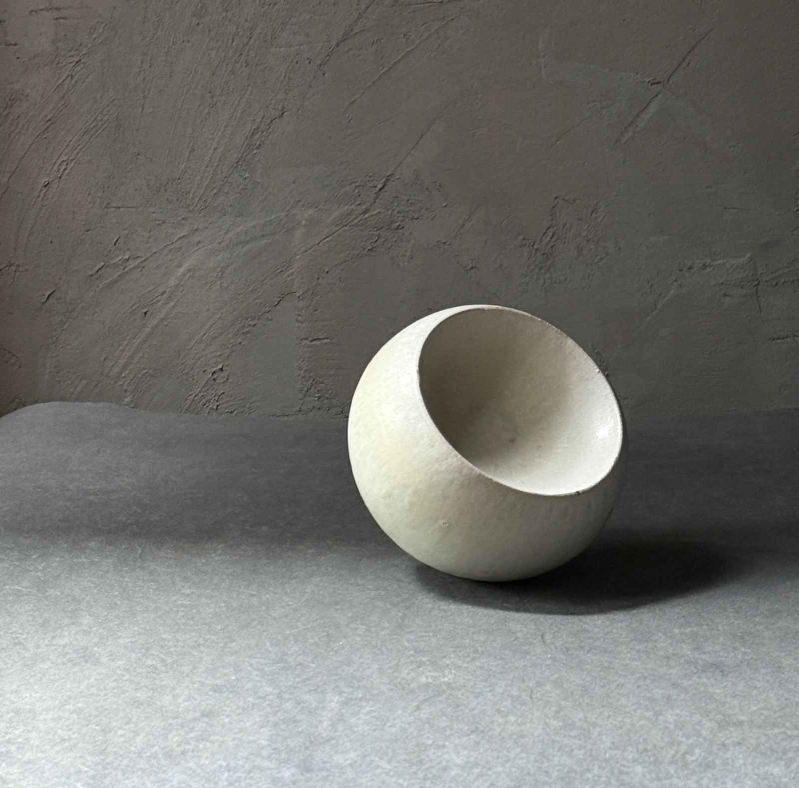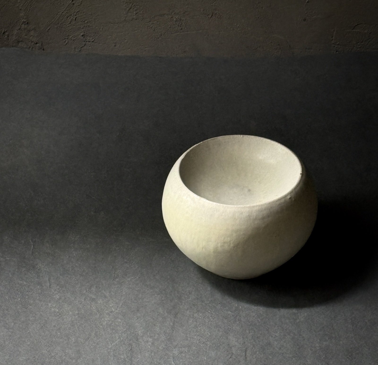 【 清岡 幸道 】 晶白釉 凹(へん)ボウル