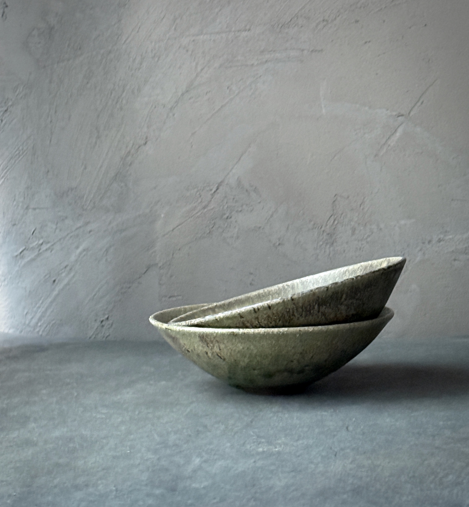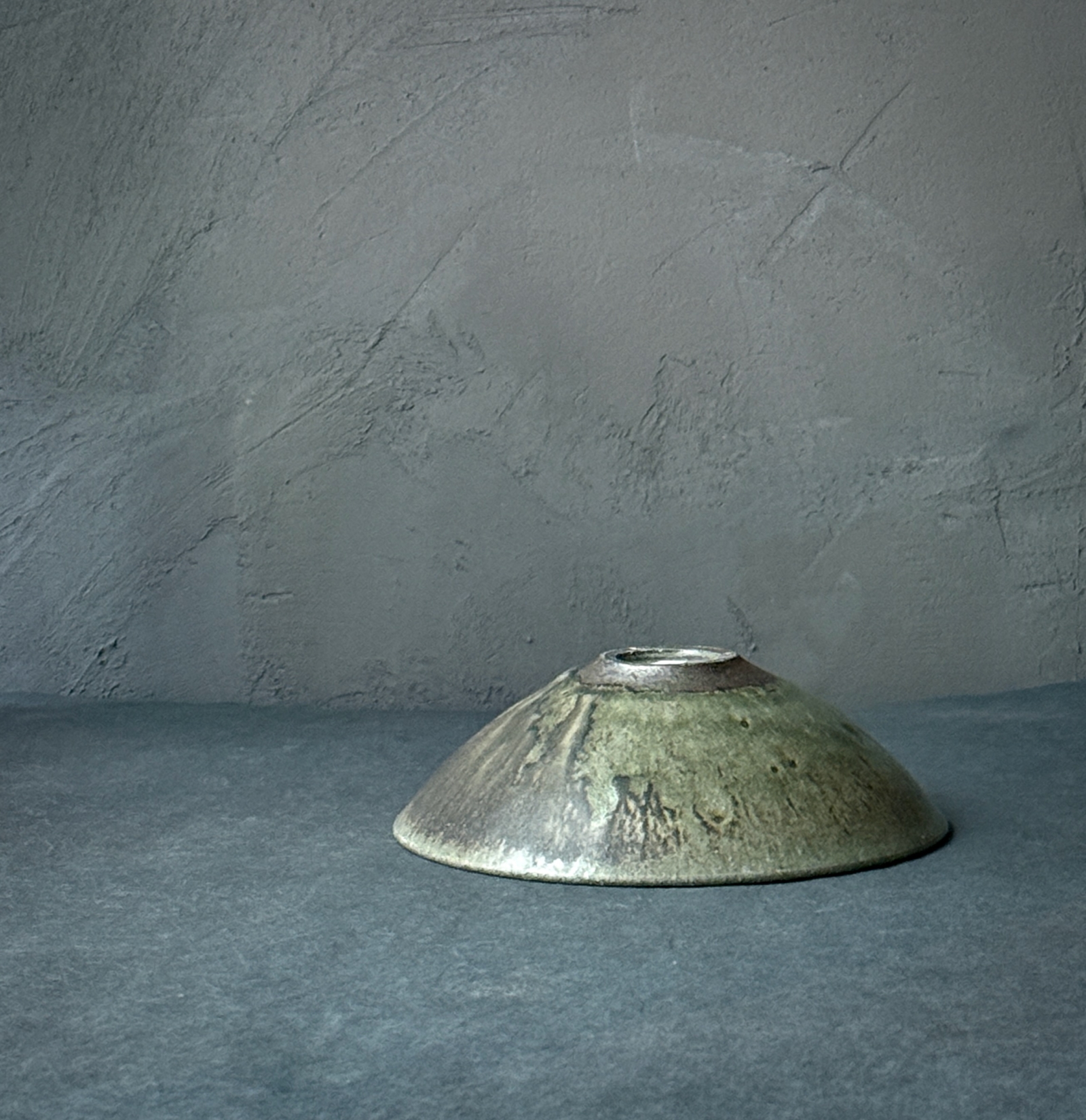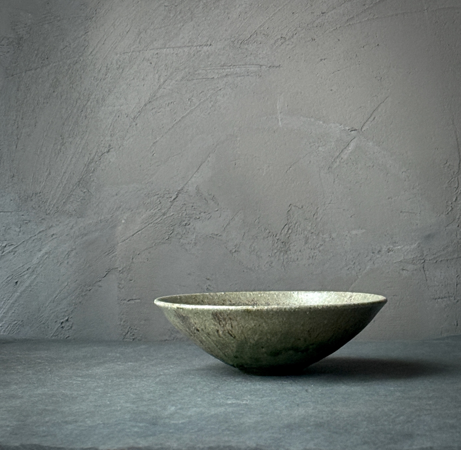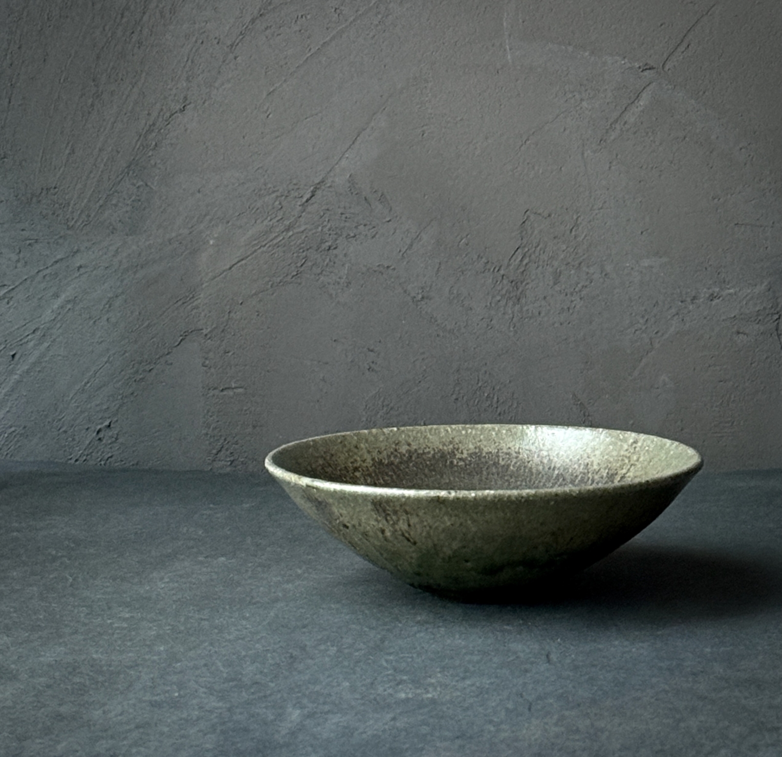 青灰の釉薬を高温で焼いて制作されている「青灰 平椀」。