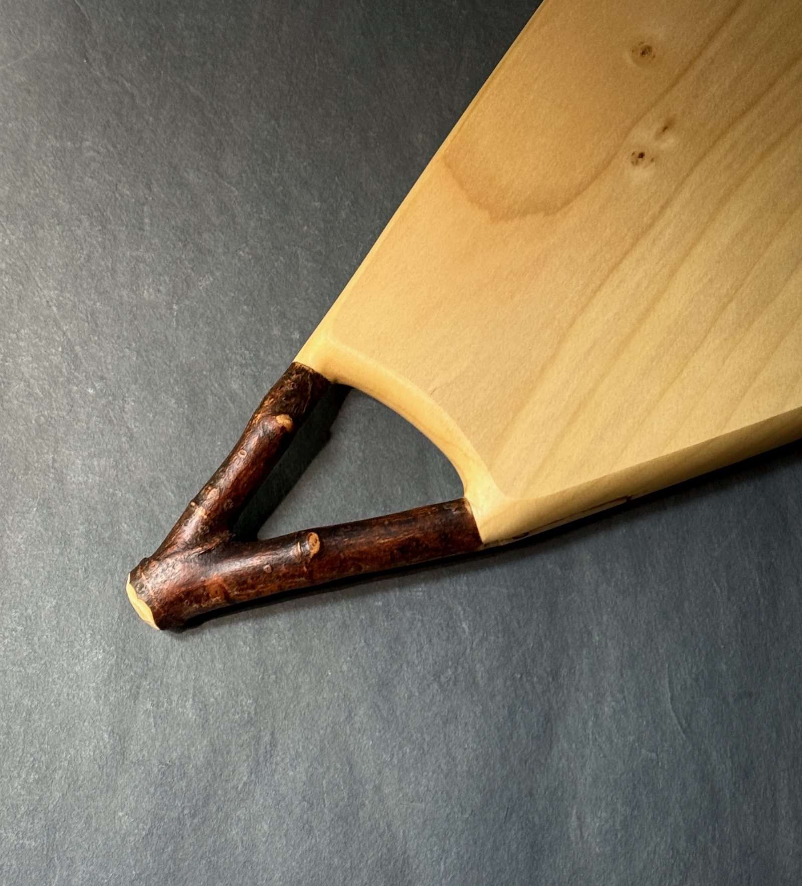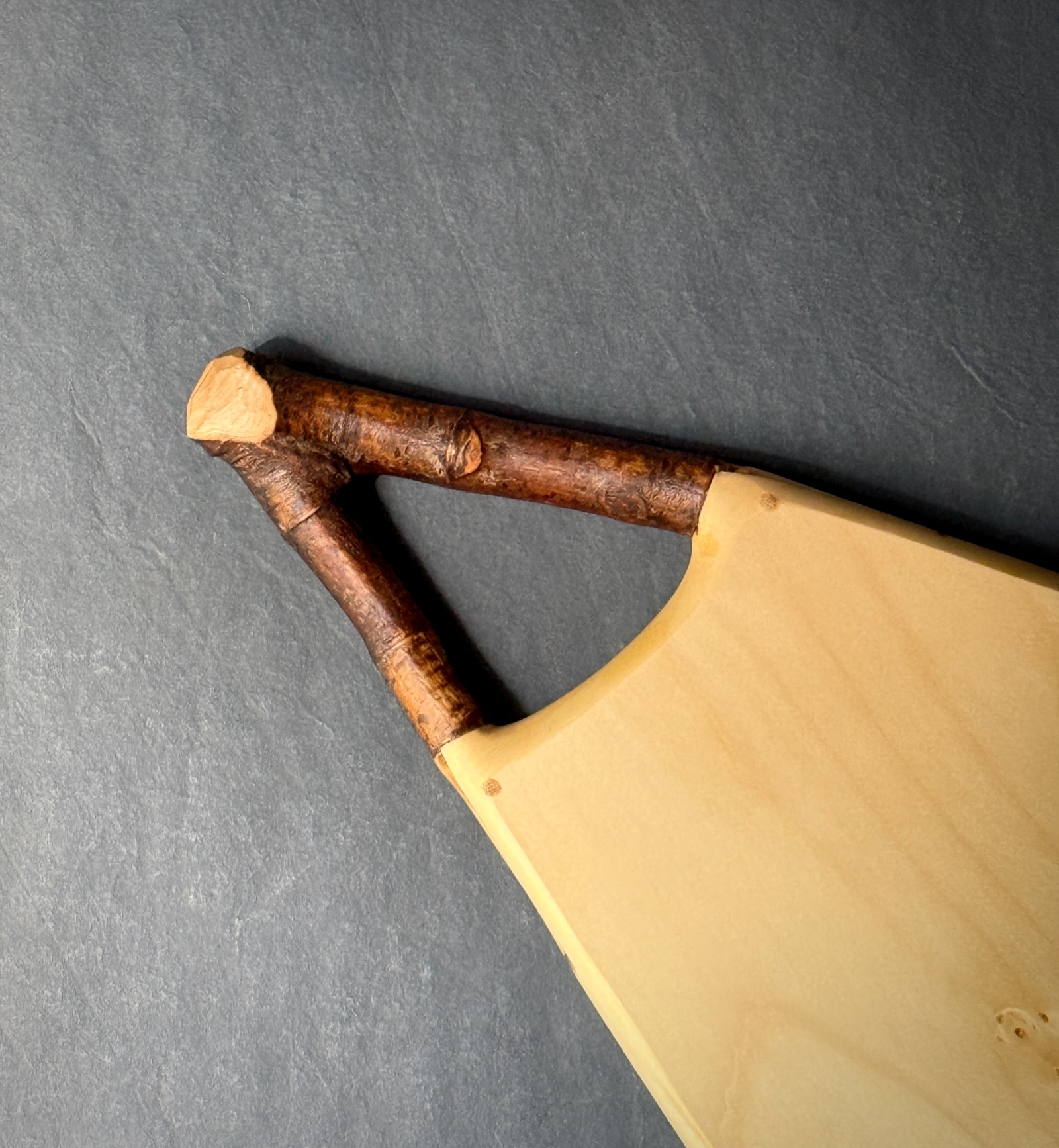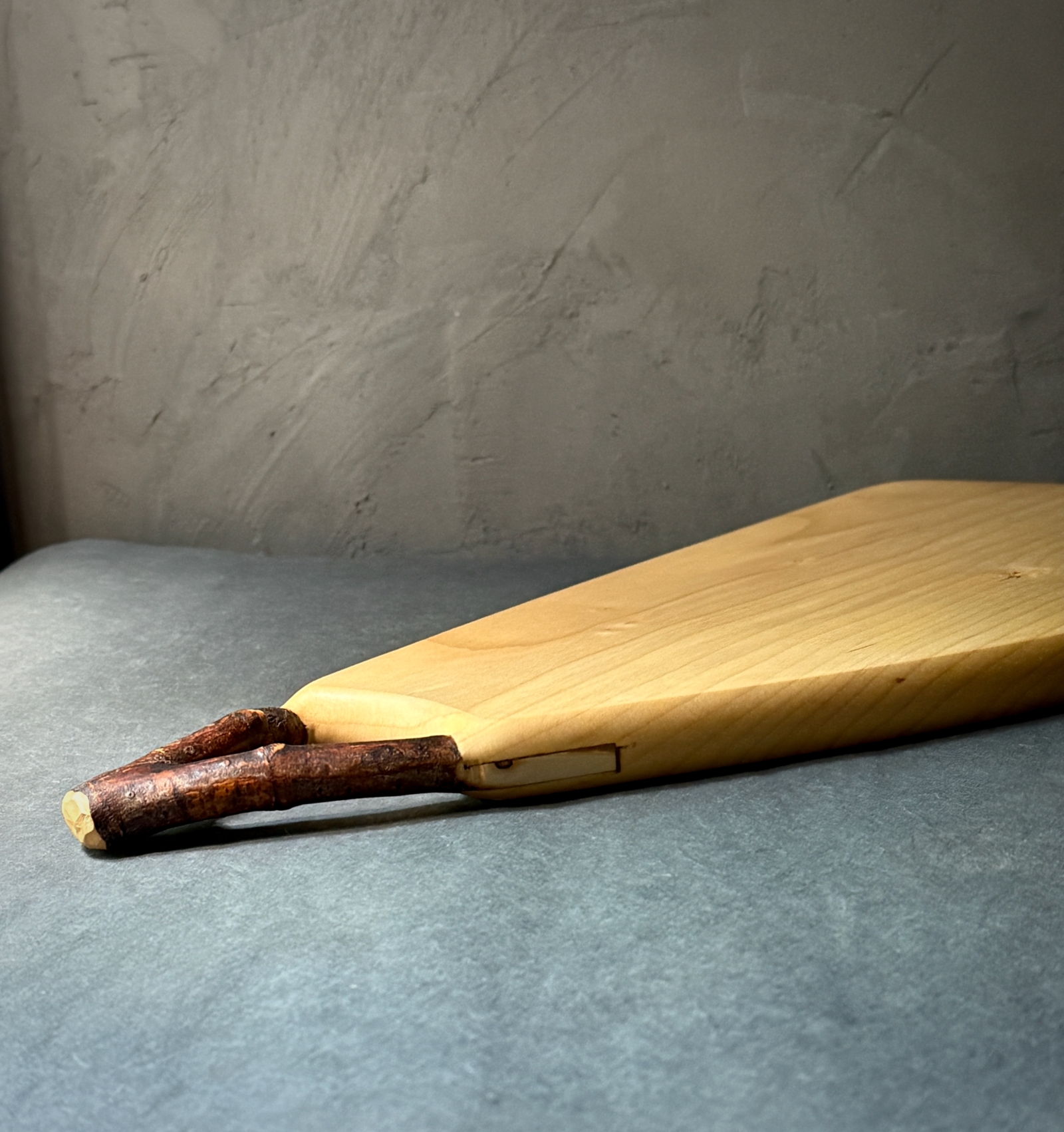 持ち手の「木の枝」がカッティングボードの雰囲気を与え印象深いものに。