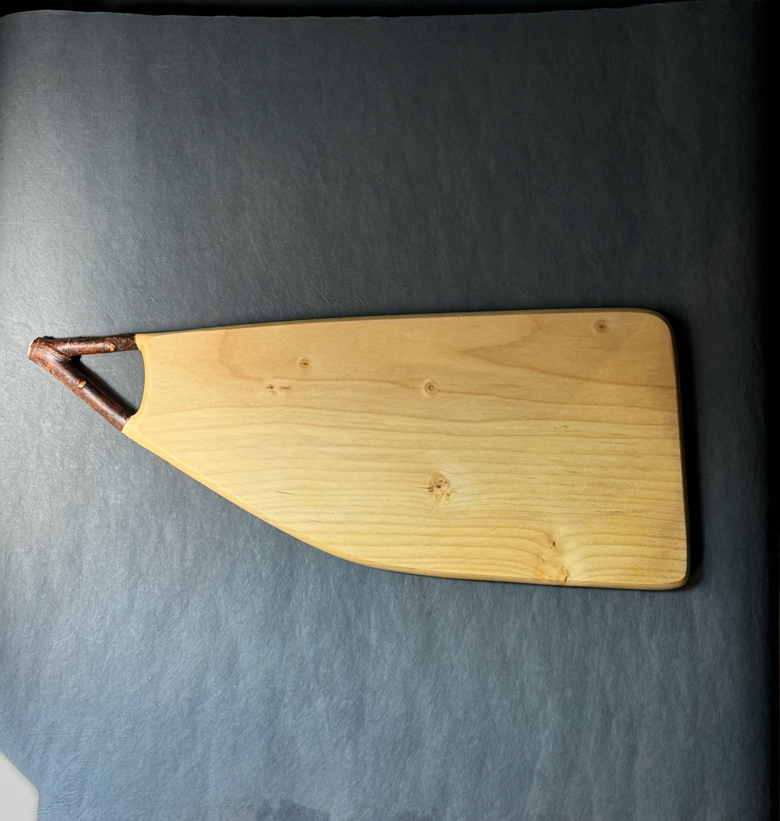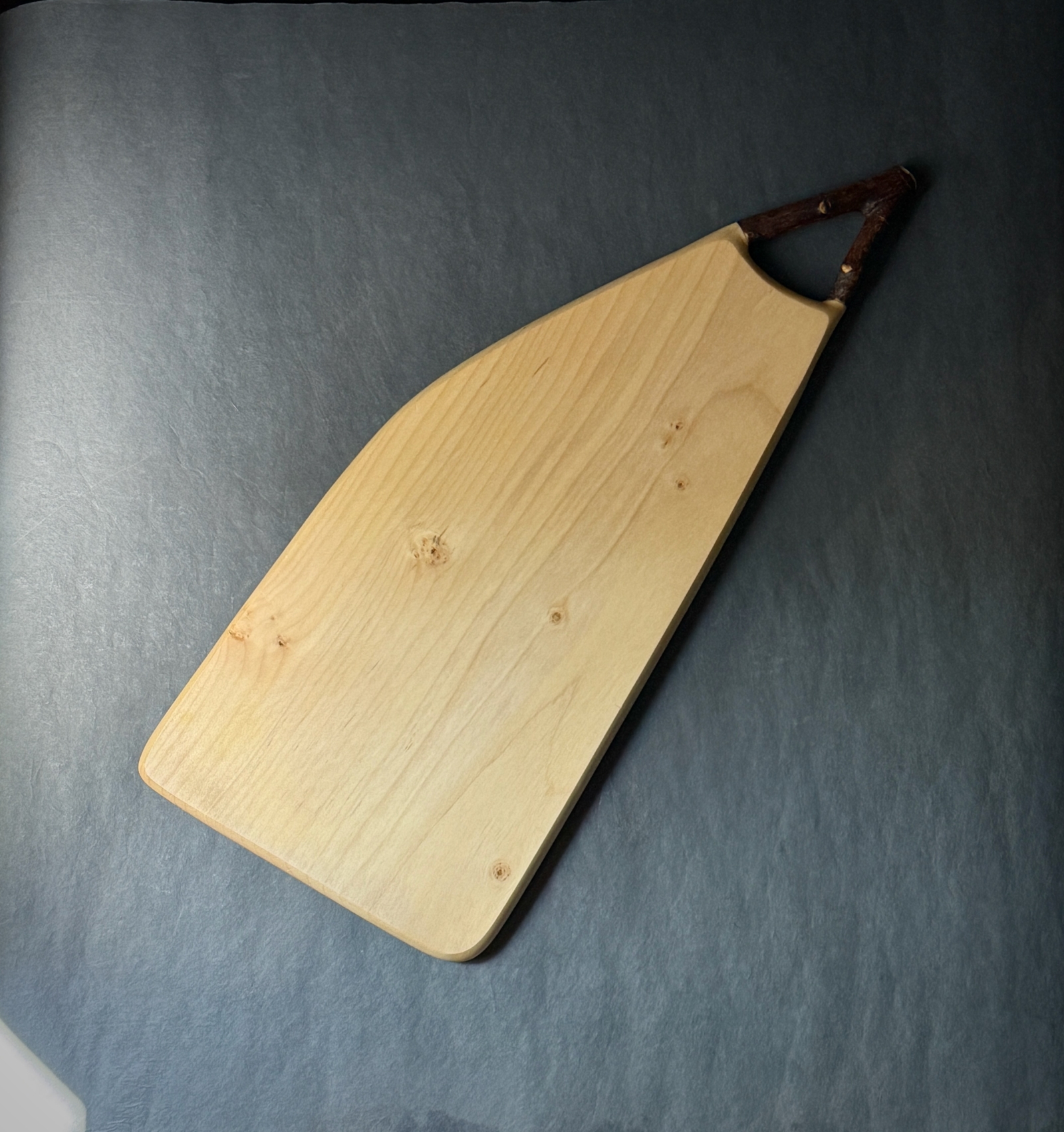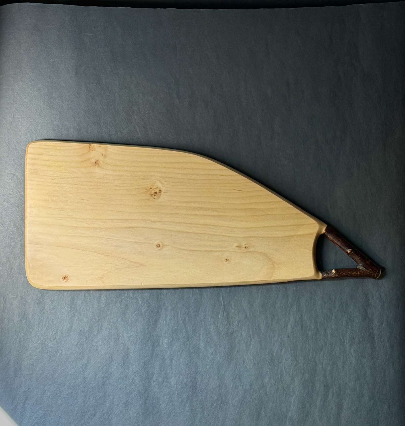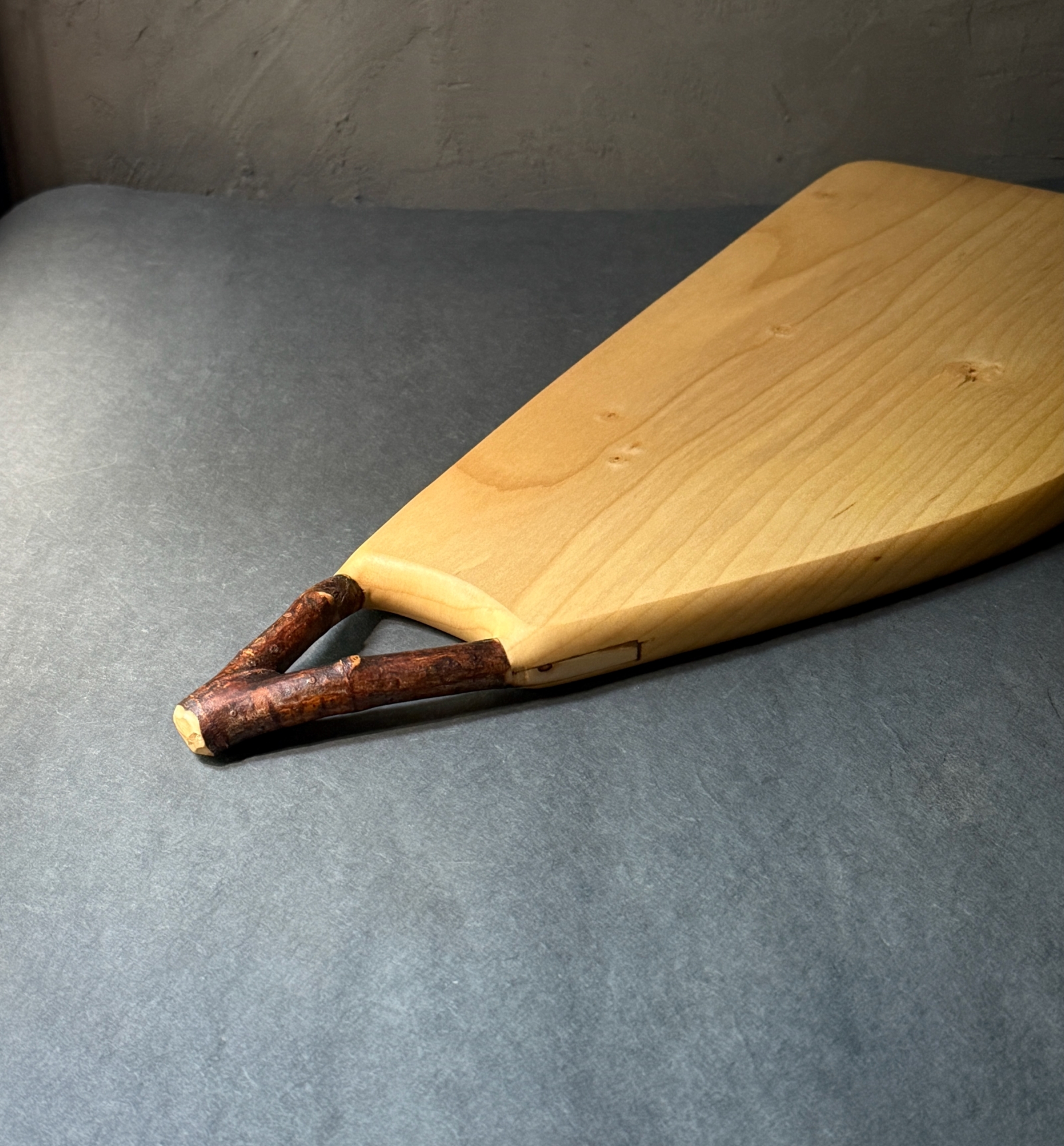持ち手の「木の枝」がカッティングボードの雰囲気を与え印象深いものに。